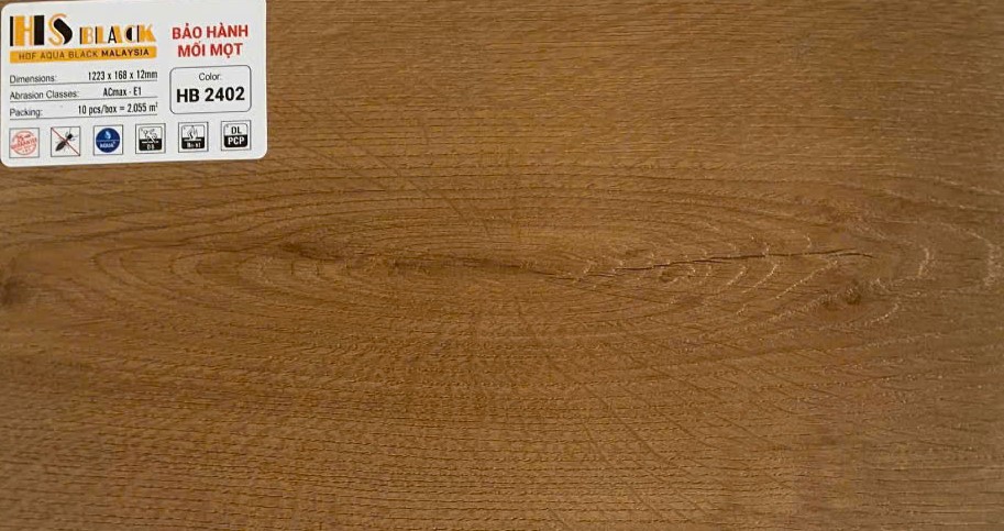 Sàn gỗ cốt đen có kích thước: 1223×168x12mm. Quy cách: 1 hộp/10 thanh/2.055m2.