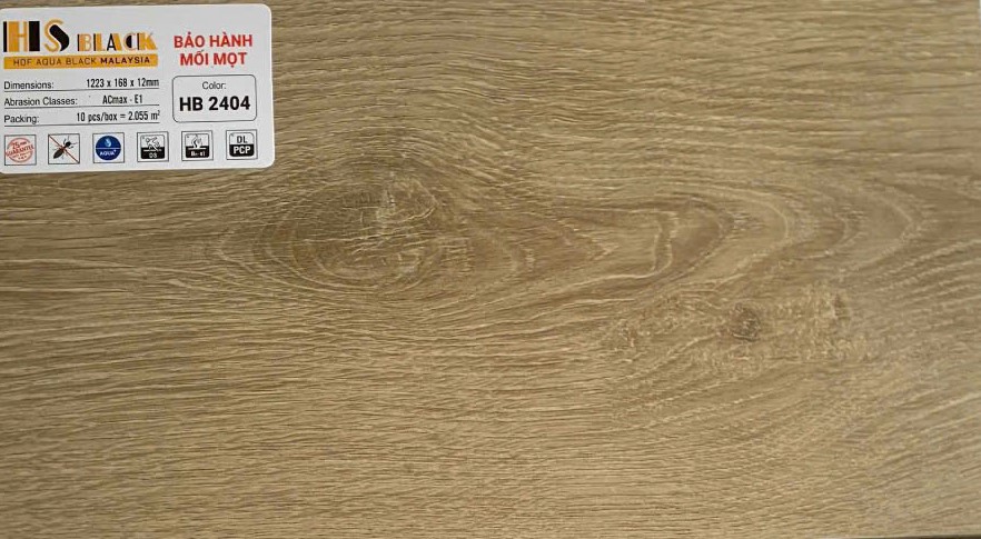 Sàn gỗ cốt đen có kích thước: 1223×168x12mm. Quy cách: 1 hộp/10 thanh/2.055m2.