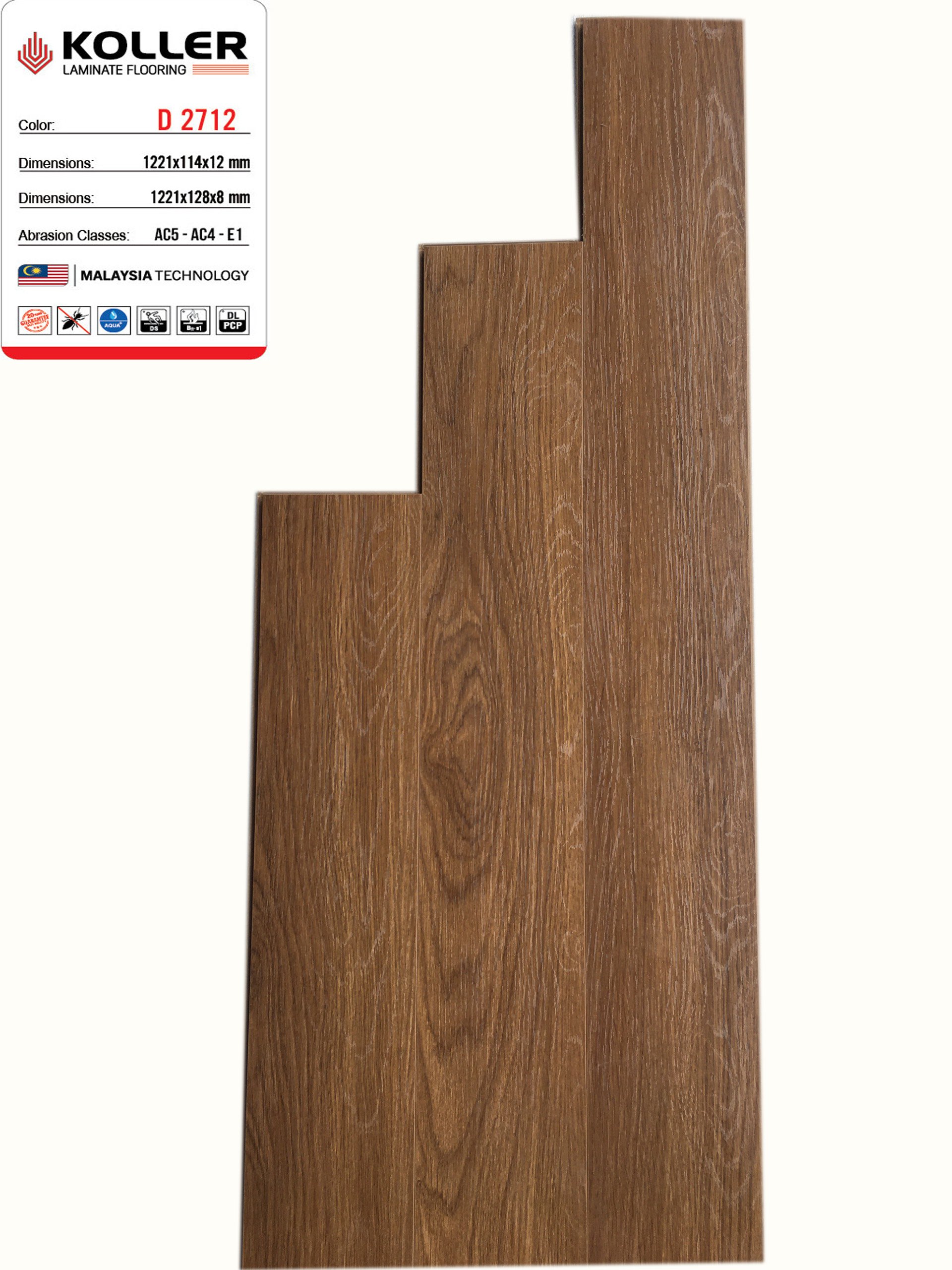 Sàn gỗ Koller D2712-8 thuộc dòng sản phẩm Sàn gỗ Koller 8mm có màu nâu đen, phù hợp với các phòng nhiều ánh sáng được thiết kế theo phong cách cổ điển, kết hợp tốt với nội thất sáng màu