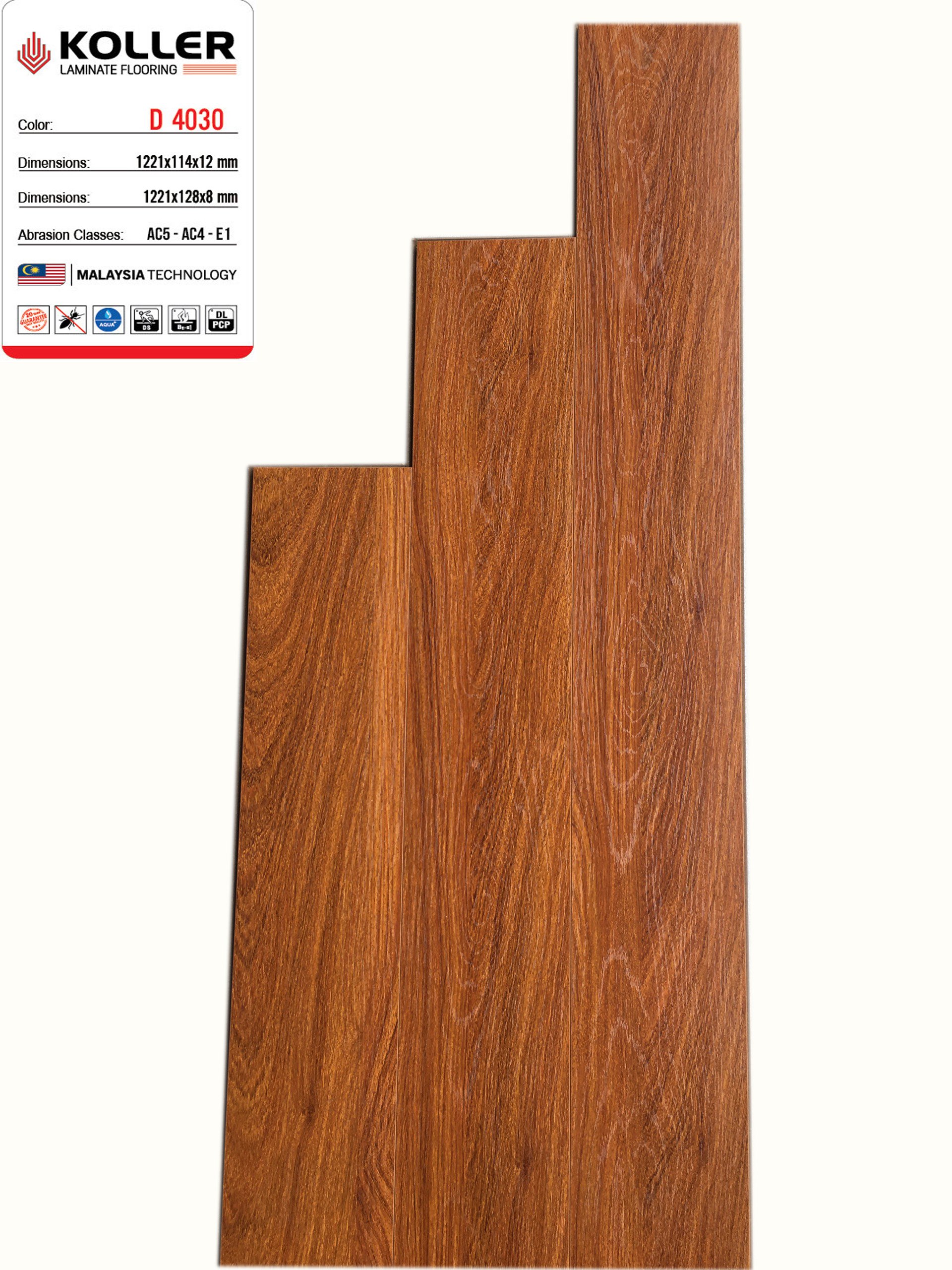 Sàn gỗ Koller D4030-8 thuộc dòng sản phẩm Sàn gỗ Koller 8mm có màu nâu đỏ, phù hợp với các phòng nhiều ánh sáng được thiết kế theo phong cách cổ điển, kết hợp tốt với nội thất sáng màu